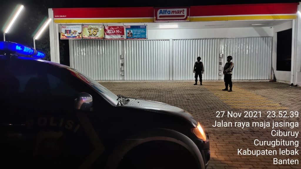 Personil Polsek Curugbitung Polres Lebak melaksanakan Patroli rutin di malam hari, sasaran utama kegiatan patroli ini yaitu pengecekan obyek vital yang berada di wilayah Kecamatan Curugbitung, diantaranya tempat perbelanjaan waralaba, sekolahan, pemukiman warga.