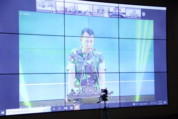 Kubu Raya, Jum’at (22/7/22) – Asisten Teritorial Kasdam XII/Tanjungpura, Kolonel Inf Ruddy Trenggono, S.Sos, didampingi Ketua Harian Pengprov ESI Kalbar mengikuti Opening Ceremony Esports Piala Kasad tahun 2022 secara virtual dari Ruang Rapat Puskodalopsdam XII/Tpr.