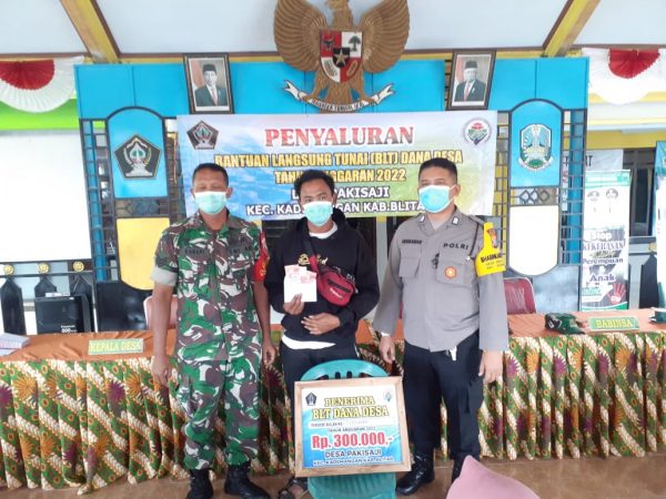 Blitar – Babinsa Koramil Tipe B 0808/10 Kademangan Kodim 0808/Blitar Serka Kanapi bersama Bhabinkamtibmas selalu bersinergi, melaksanakan kegiatan pendampingan penyaluran Bantuan Langsung Tunai Dana Desa (BLT DD) kepada warga masyarakat kurang mampu, yang terdampak pandemi Covid -19 di wilayah binaannya.