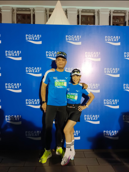 Salah satu pasangan suami-istri warga Bandung yaitu keluarga Agus Sulistiyanto juga turut menjadi peserta lari;