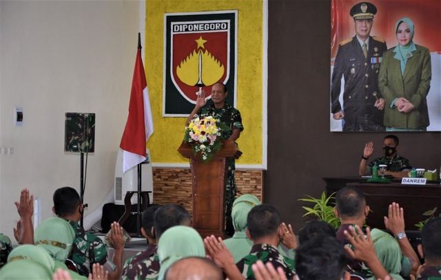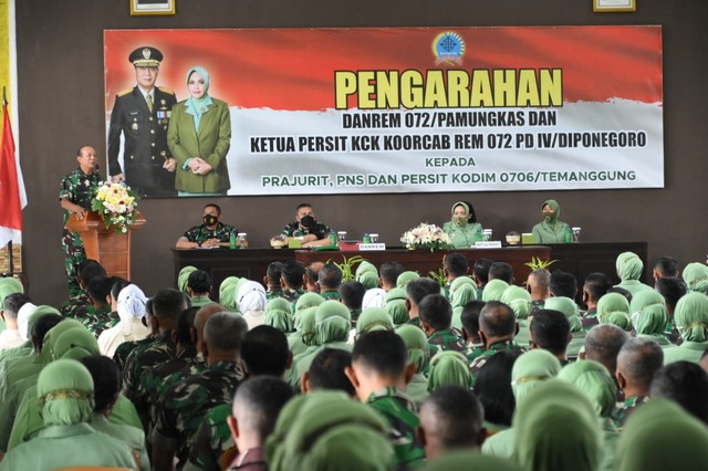 Danrem 072/Pamungkas dalam pengarahannya mengajak kepada seluruh Prajurit, PNS dan Persit Kodim 0706/Temanggung untuk selalu bersyukur kepada Tuhan Y.M.E atas kesehatan dan nikmat yang diberikan kepada kita, sehingga dapat mengemban tugas dan pengabdian kepada bangsa dan Negara.