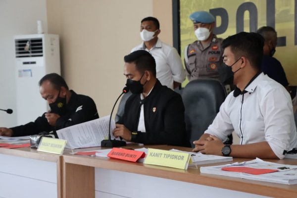 Lebak – Klikberita.net Satuan Reserse Kriminal (Reskrim) Polres Lebak Polda Banten melaksanakan Press Conference Pengungkapan Kasus Tindak Pidana Korupsi pada proses pendistribusian Bantuan Langsung Tunai (BLT) di Aula Sanika Satyawada Polres Lebak. Senin (29/11/2021).