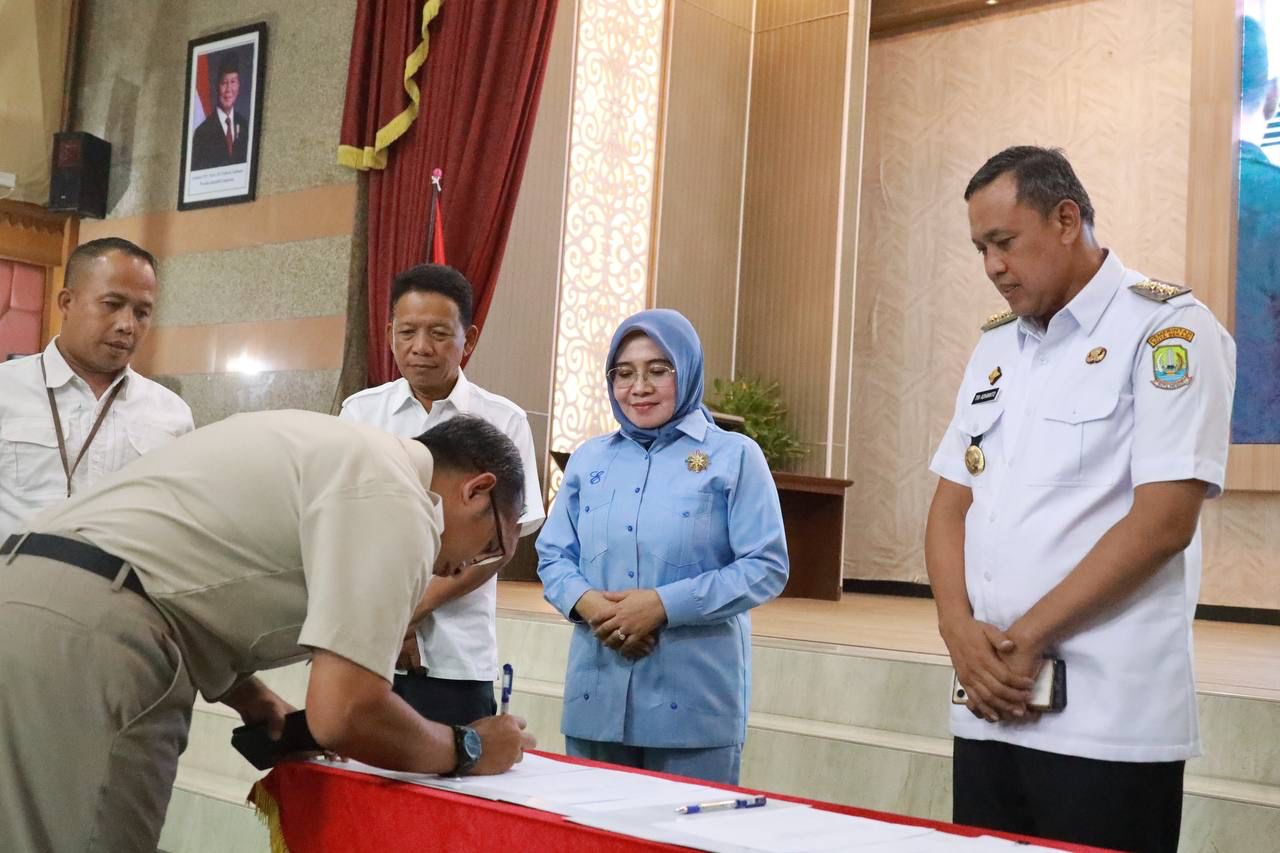 Kegiatan ditutup dengan penandatanganan berita acara Rancangan Awal RPJMD oleh stakeholder terkait serta foto bersama. (R_Kfs74D)