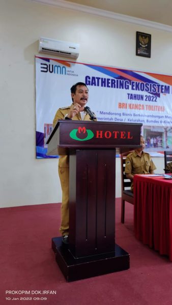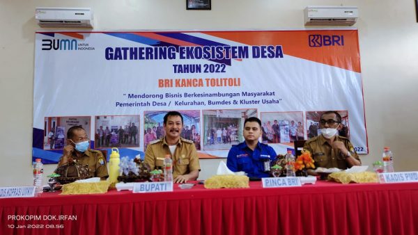 Tolitoli – PT. Bank Rakyat Indonesia (Persero) Kantor Cabang Tolitoli menggelar Gathering Ekosistim Desa Tahun 2022 yang secara resmi dibuka oleh Bupati Tolitoli Amran Hi. Yahya, di Hotel Mitra Utama Tolitoli pada Senin pagi (10/01).