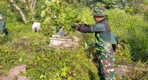 Surakarta, Salah satu kebudayaan yang menjadi identitas di lingkungan masyarakat adalah kerja bakti, Serka M Nur Hakib Babinsa Kel Joyotakan Koramil 03/Serengan Kodim 0735/Surakarta melaksanakan kerjabakti pembersihan Makam di RW 3 kel Joyotakan kec Serengan Kota Surakarta, Jum’at (22/07/22).