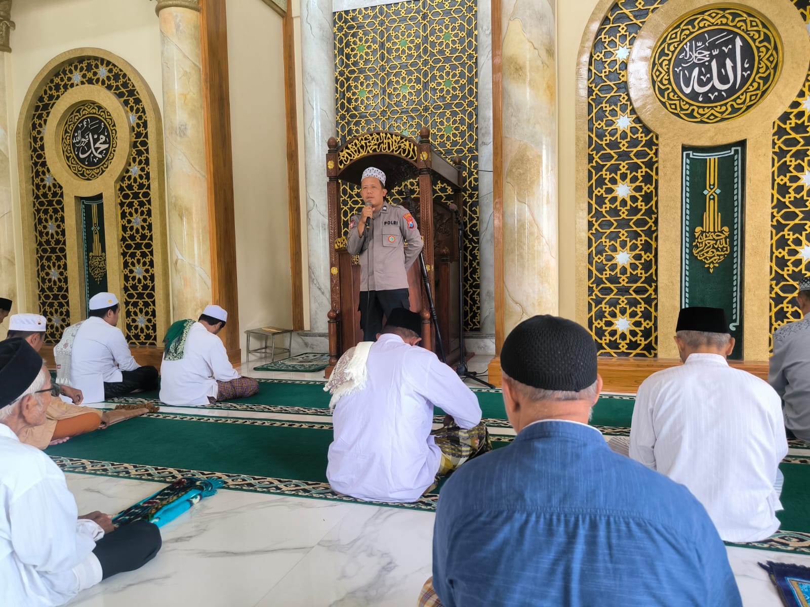Dalam kesempatan tersebut, petugas menyampaikan imbauan kamtibmas kepada jamaah, khususnya dalam rangka menyambut malam pergantian tahun baru. Masyarakat diajak untuk tidak menggelar pesta kembang api maupun konvoi kendaraan, serta meningkatkan pengawasan terhadap anak-anak dan remaja agar tidak terjerumus dalam pergaulan yang dapat merugikan masa depan mereka. Warga juga diimbau untuk berperan aktif melaporkan setiap informasi maupun kejadian menonjol di lingkungan sekitar melalui layanan kepolisian 110.