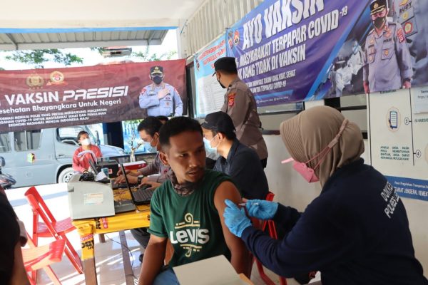 “Ya pagi ini, Polres Lebak Polda Banten melaksanakan vaksinasi mobile di areal sekitar Terminal Mandala Kecamatan Cibadak Kabupaten Lebak,” ujar Teddy.