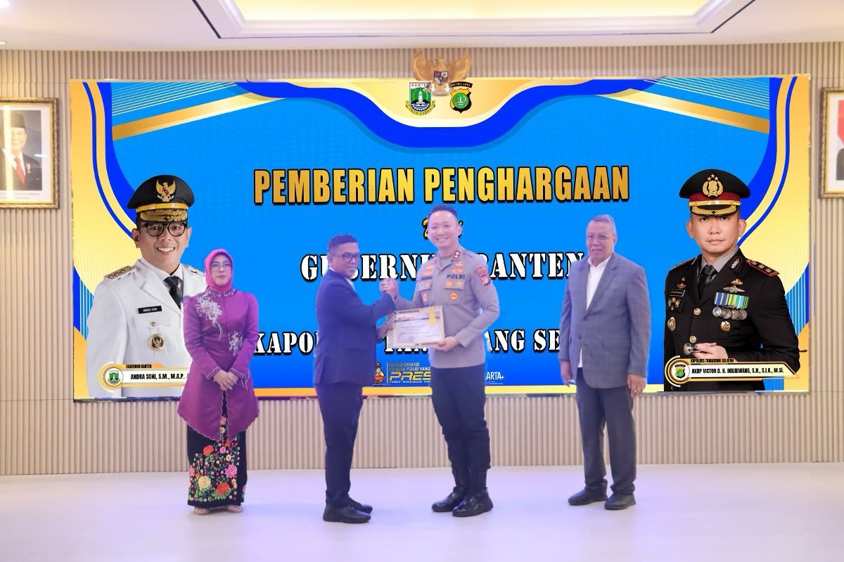 Penghargaan diberikan langsung oleh Gubernur Banten Andra Soni, S.M., M.A.P. kepada Kapolres Tangsel AKBP Victor D.H. Inkiriwang, S.H., S.I.K., M.Si. berserta anggota Jajaran Polres Tangerang Selatan bertempat di Aula Guyub Polres Tangerang Selatan.