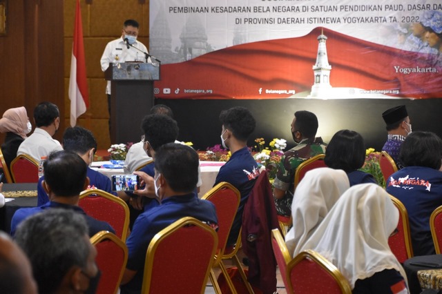 Walikota mengucapkan terima kasih kepada Dirjen Pothan Kemhan RI yang telah memilih Kota Yogyakarta sebagai salah satu sasaran penyelenggaraan kegiatan Sosialisasi dan Diseminasi Pembinaan Kesadaran Bela Negara di Satuan Pendidikan para Guru, siswa PAUD, SD, SMP dan SMA TA. 2022, dimana utk kesempatan saat ini melibatkan 180 peserta.