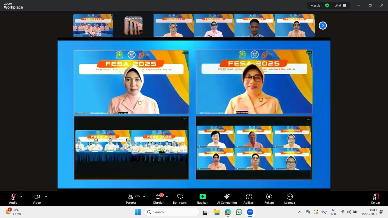 Makassar – Ketua Yasarini Pengurus Cabang Lanud Sultan Hasanuddin Ny. Betty Arifaini Nur Dwiyanto didampingi segenap pengurus Yasarini Lanud Sultan Hasanudin mengikuti pembukaan Festival Edukasi Sekolah Angkasa (FESA) Ke-9 Tahun 2025 secara online di Kantor PIA AG Lanud Sultan Hasanuddin, Makassar. Senin (15/9/2025).