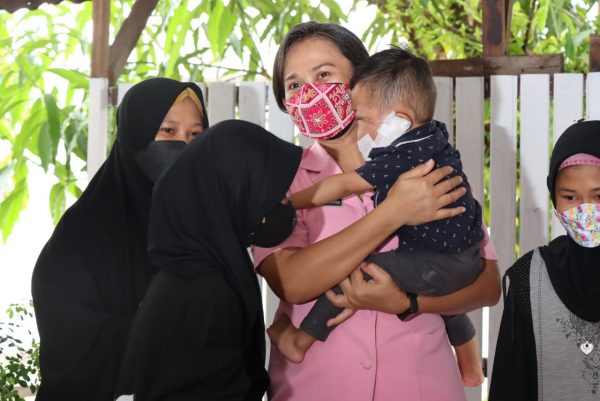 Setelah selesai menjenguk anak dari Aipda Budi Santoso Ketua Umum Bhayangkari didampingi Ketua Bhayangkari Daerah Kalbar Ny. dr. Ratna Suryanbodo, SpKK dan Kapolda Kalbar Irjen Pol. Suryanbodo Asmoro, M.M.