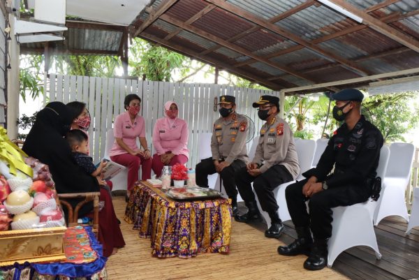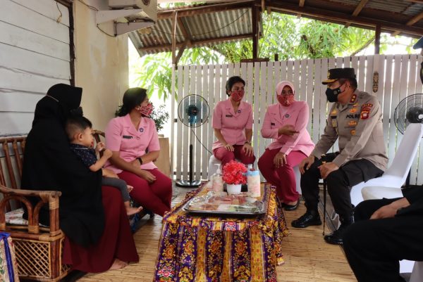 Kalbar – Ketua Umum Bhayangkari Ny. Juliati Sigit Prabowo kunjungi Ksatriaan Soemarto Mako Satbrimob Polda Kalbar dan menyerahkan bantuan Bhayangkari peduli kepada salah satu anak personel Satbrimob Polda Kalbar. Kamis (12/05/22).