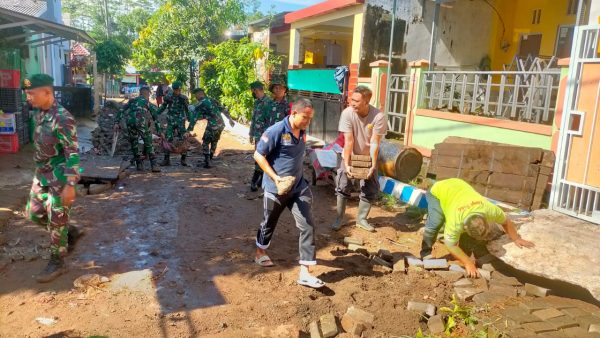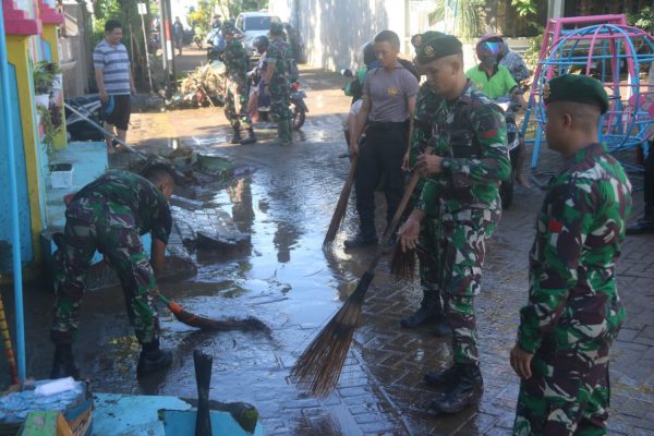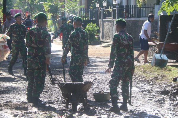 “Kegiatan ini dibagi di beberapa titik lokasi yang terkena banjir dengan harapan semua tempat yang terkena banjir bisa bersih kembali seperti sedia kala,” ujar Danbrig.
