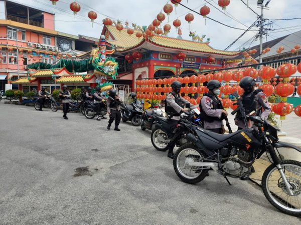 Singkawang – Satbrimob Polda Kalimantan Barat kembali lakukan patroli guna menjaga situasi kamtibmas tetap kondusif selama perayaan Imlek di Kota Singkawang. Selasa 08/02/22.
