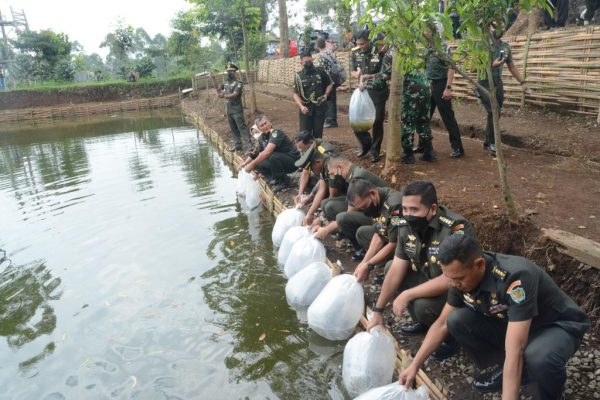 Di akhir kegiatan, Pangdam III/Slw Mayjen TNI Kunto Arief Wibowo dan Ketua Persit KCK Daerah III/Slw Ny. Mia Kunto Arief Wibowo bersama rombongan melakukan penaburan bibit ikan Nila dilepas secara bersama-sama, dan dilanjutkan penanaman tanaman pertanian serta melakukan panen perdana cabe rawit.