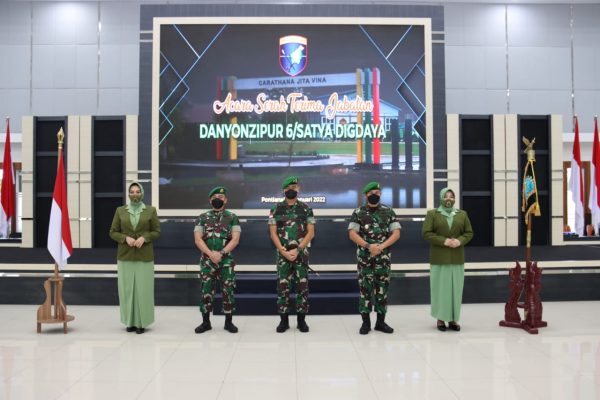 Sertijab ditandai dengan laporan resmi, penyematan tanda jabatan, penyerahan tongkat komando dan penyerahan tunggul Batalyon serta penandatanganan naskah serah terima. Selain Sertijab Danyon, dalam waktu yang sama juga dilaksanakan Sertijab Ketua Persit KCK Cabang LVIII Yonzipur 6 dari Ny. Tika Febrianto kepada Ny. Ayu Agus Ikwanto