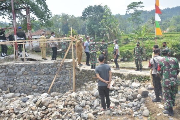 BOGOR – KLIKBERITA.NET Panglima Divisi Infanteri (Pangdivif) 1 Kostrad Mayjen TNI Dedy Kusmayadi didampingi Muspika Kecamatan Dramaga meninjau lokasi pembangunan jembatan gantung di Desa Ciherang, Kecamatan Dramaga, Kabupaten Bogor.