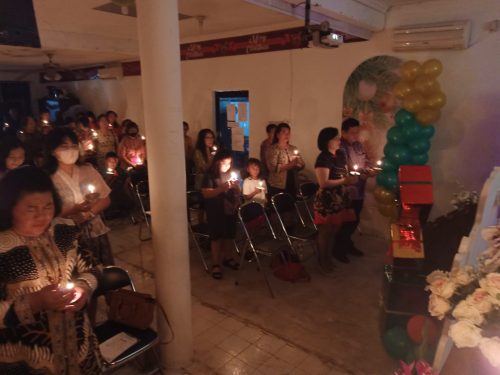 Ibadah Natal yang di mulai dengan mengalunkan puji – pujian bertemakan natal menambah hikmat suasana natal sore saat itu, renungan natal yang di sampaikan oleh Bapak Gembala Pdt.Dr.Leo Fransisco dengan tema ” Jadilah Terang ” (Kisah Para Rasul 13 : 47) membawa kaum wanita Filadelfia yang hadir memaknainya menjadi sebuah refleksi diri untuk menjadi terang dan garam dalam panggilanya dimana pun berada.