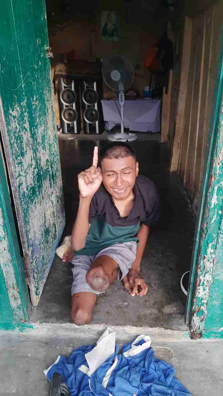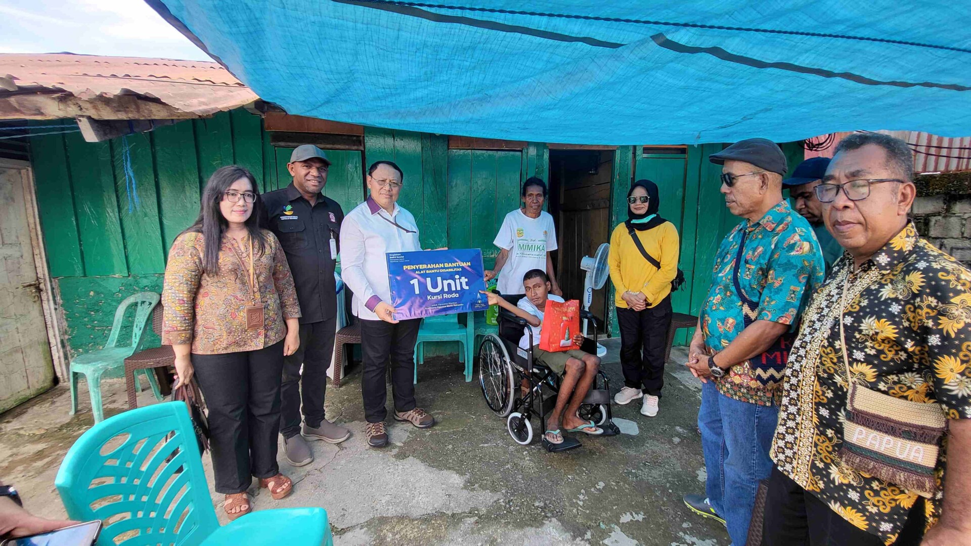Egenius Mario Rahamitu (19 tahun 2 bulan), seorang pemuda dari Kabupaten Mimika yang hidup bersama kedua orang tuanya, Keinas Laim dan Paula Rahamitu. Kondisi kesehatan keluarga yang kurang mendukung menjadikan bantuan kursi roda ini sangat berarti.