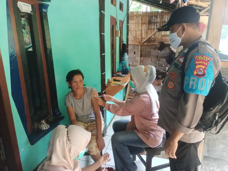 Lebak – Guna meciptakan Herd Immunity Warga desa Sindang Wangi kecamatan Muncang Kabupaten Lebak mengikuti Vaksinasi Covid-19 Dosis Satu (1) dan Dosis (2) yang diadakan Polsek Muncang Polres Lebak Polda Banten secara door- to- door yang bertempat di Desa Leuwi coo Kec. Muncang, Kab. Lebak, Kamis (13/01/2022)