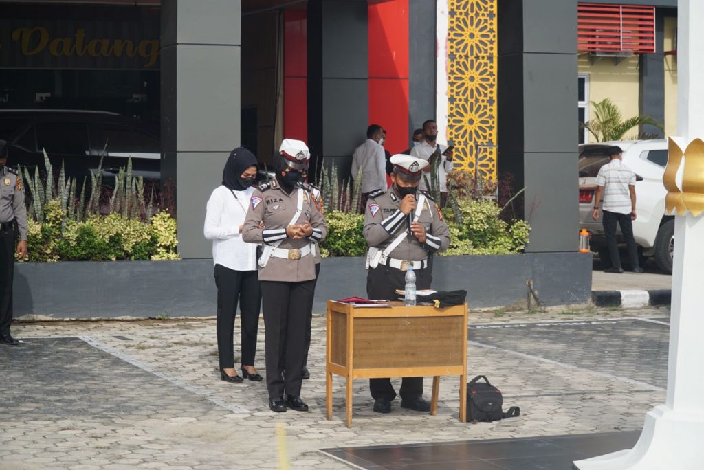 Bertindak sebagai Inspketur Apel Kapolres Rohul AKBP Eko Wimpiyanto Hardjito SIK, Perwira Upacara Kasat Lantas AKP Bagus Harry Priyambodo, SIK, sedangkan cadangan perwira Apel AKP Nadeak.