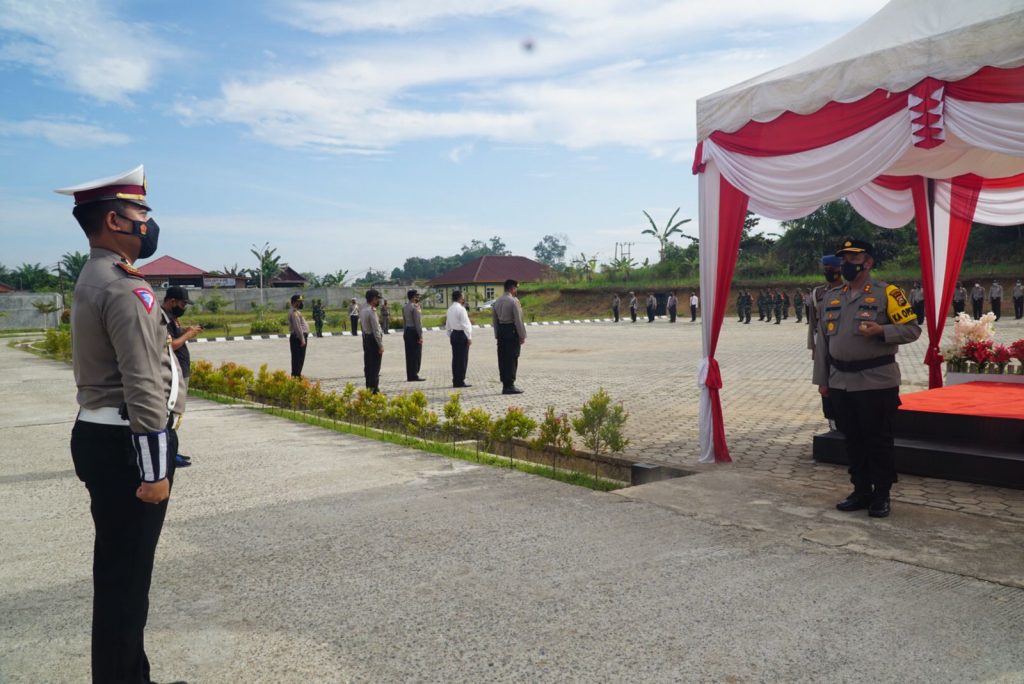 Terpantau dalam kesempatan itu, Komandan apel memasuki lapangan apel, pasukan disiapkan, Kapolres Rohul sebagai Inspektur apel memasuki lapangan apel, pasukan disiapkan.