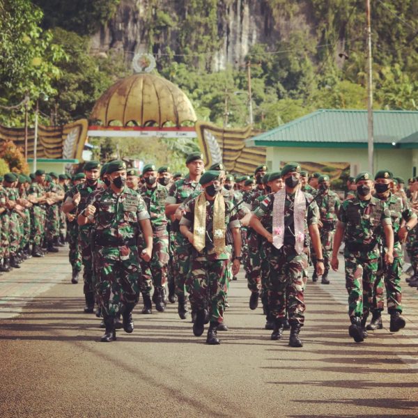 Jakarta – Prajurit Yonif Para Raider 433 Kostrad mengikuti tradisi penyambutan purna tugas Satgas Kosektor Timur wilayah Papua yang diperbantukan bersama Satgas Kosektor Brigif Para Raider 3 Kostrad telah kembali ke home base setelah selesai melaksanakan tugas operasi lebih kurang 1 tahun, bertempat Mayonif Para Raider 433 Kostrad, Sambueja. Senin (1/3/2022).