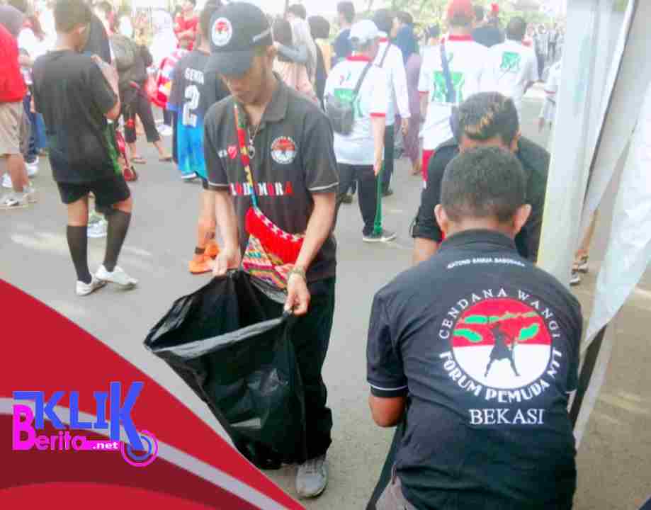Diantara kehadiran Peserta yang memadati lokasi kegiatan Hari Amal Bhakti Kemenag tampak hadir puluhan pengurus Forum Umat Nasrani Bagi Kota Bekasi (Forbakti) bersama Forum Pemuda NTT Kota Bekasi terlihat sigap lakukan Aksi bersihkan sampah yang berserak di halaman Plaza Pemkot Bekasi secara bergotong royong, memungut sampah bekas kemasan atau jajanan dari bazaar UMKM.