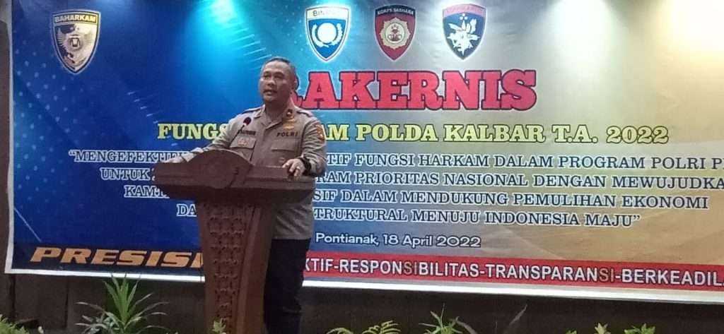 Pontianak, Kalimantan Barat – Kapolda Kalbar Irjen Pol Drs. Suryanbodo Asmoro.MM secara resmi membuka Rakernis fungsi Harkam Polda Kalbar Tahun Anggaran 2022 di hotel Mahkota Pontianak Kalbar Senin (18/4).