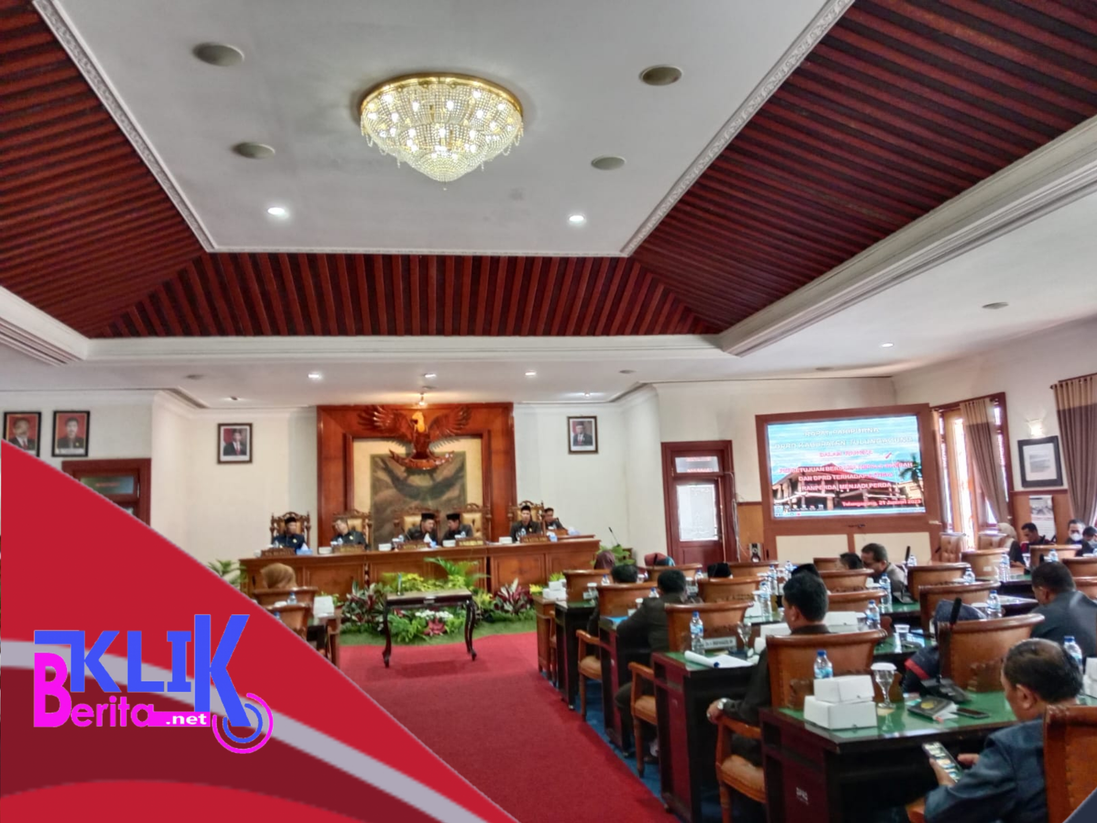Dewan Perwakilan Rakyat Daerah (DPRD) kabupaten Tulungagung menggelar rapat paripurna dengan pembahasan persetujuan bersama Kepala Daerah dan DPRD terhadap penetapan 3 Ranperda menjadi Perda. Rapat paripurna tersebut, bertempat di ruang Graha Wicaksana Kantor DPRD kabupaten Tulungagung pada Sabtu pagi (21/1).
