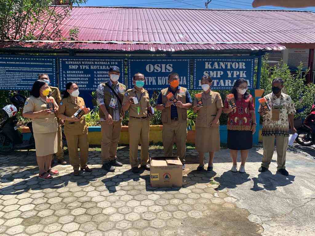Supervisor Prokes Kota Jayapura Rus Nurhadi mengatakan, BNPB mengajak masyarakat agar mentaati prokes, serta menggunakan masker. “Kegiatan pembelajaran tatap muka secara langsung sudah dimulai per tanggal 11 Oktober 2021. Mengantisipasi penularan Covid-19 kami serahkan 2.000 masker ke SMP YPK Kotaraja. Bagi para siswa diharapkan dapat menjadi agen perubahan perilaku dengan ikut mengajak keluarga, teman dan orang disekitarnya untuk tetap menjalankan prokes. Diharapkan para siswa dan guru saat melakukan pembelajaran tatap muka secara langsung menerapkan prokes dengan selalu menggunakan masker, ujar Rus Nurhadi saat penyerahan Masker di SMP YPK Kotaraja pada (12/10).