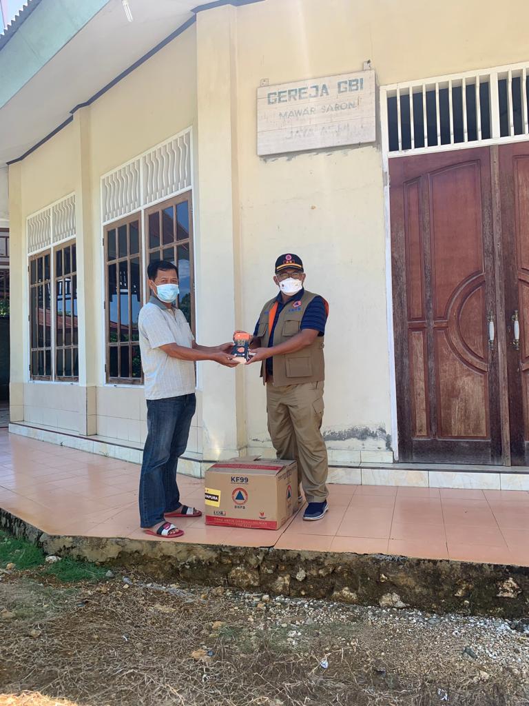 Kota Jayapura-Klikberita.net Badan Nasional Penanggulangan Bencana (BNPB) yang tergabung dalam Satuan Tugas Protokol Kesehatan (Satgas Prokes) PON XX memberikan masker ke sekolah dan tempat ibadah di Kota Jayapura. Ini sebagai bagian dari kontribusi BNPB dalam penyelenggaraan PON XX, khususnya menegakkan disiplin protokol kesehatan.
