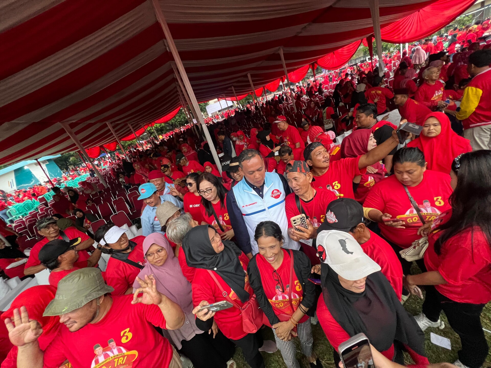 Bekasi — Dalam acara deklarasi relawan Go-Tri di Lapangan Kuda Chandra, Kelurahan Jatirahayu, Minggu (3/11), calon Wali Kota Bekasi, Tri Adhianto, tak kuasa menahan air mata saat berbagi kisah emosional tentang awal perjalanannya.