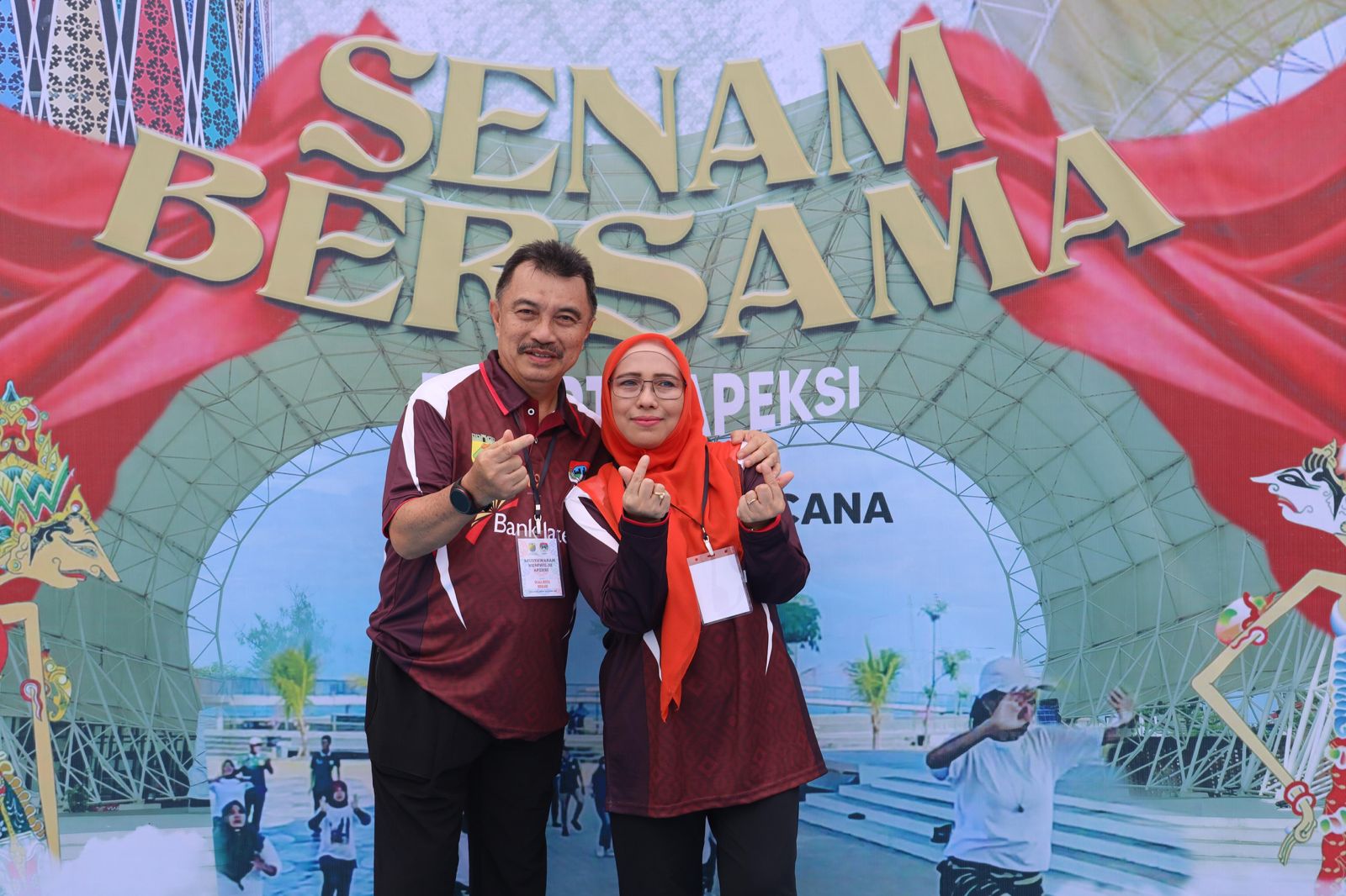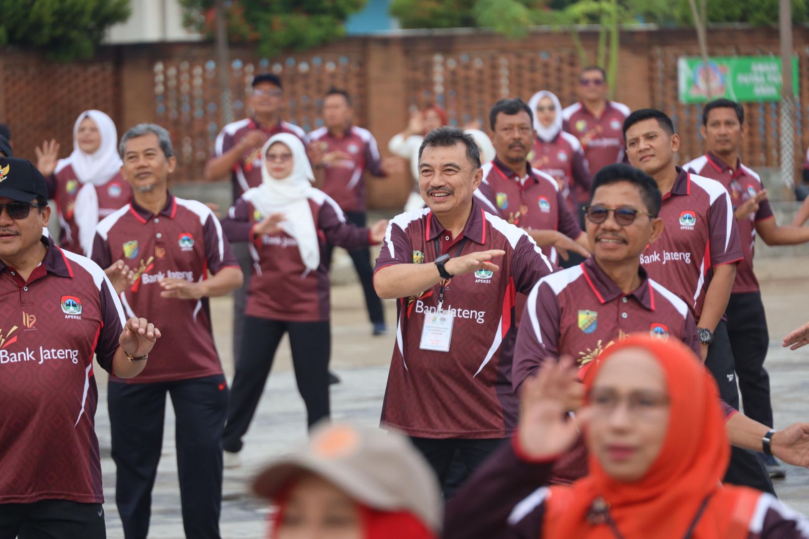 KOTABEKASI – Wakil Wali Kota Bekasi Abdul Harris Bobihoe beserta istri Wuri Handayani dan para perserta Asosiasi Pemerintah Kota Seluruh Indonesia (APEKSI) melakukan senam bersama di Taman Wisata Laut Pantai Pasir Kencana Pekalongan.